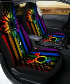 Pride LGBT Car Seat Covers Custom Sunflower American Flag Car Accessories Gifts Idea For Transgender