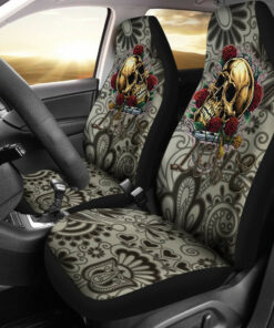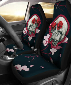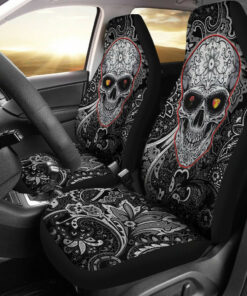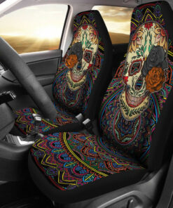 Valentine Car Seat Covers ? Colored Mandala Skull Background Roses From Eye Seat Covers