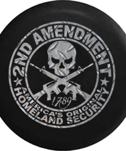 2nd Amendment Homeland Security Skull Diamond Plate Jeep Camper Spare Tire Cover Custom Size – V648