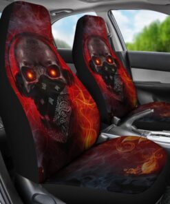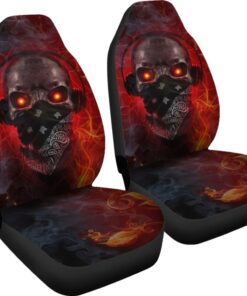 Amazing Red Fire Music Headphone Gothic Skull Car Seat Covers 211804