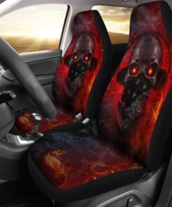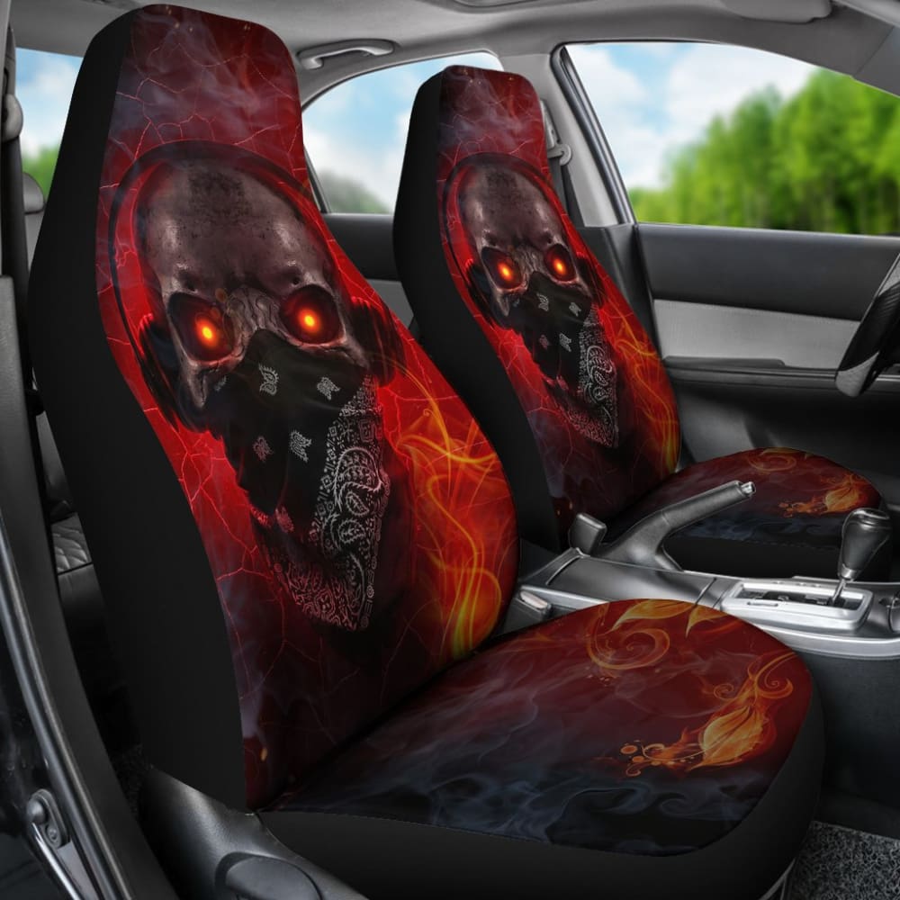 Amazing Red Fire Music Headphone Gothic Skull Car Seat Covers 211804