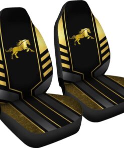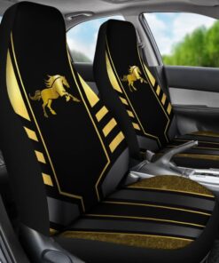 Amazing Yellow Black Horse Mustang Custom Metallic Style Printed Car Seat Covers 211407