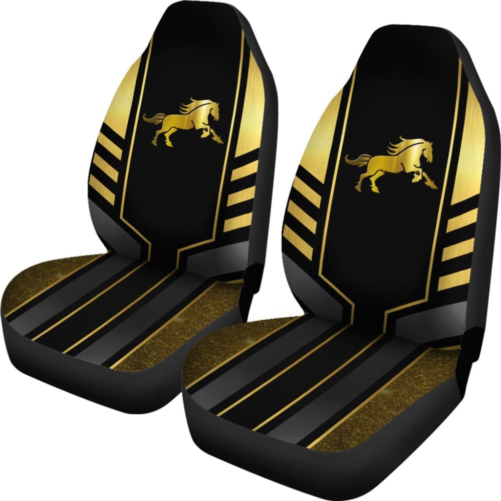 Amazing Yellow Black Horse Mustang Custom Metallic Style Printed Car Seat Covers 211407