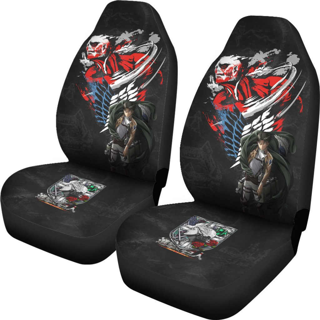 Attack On Titan Anime Car Seat Covers – Levi Colossal Titan Transformer Metal AOT Corps Seat Covers