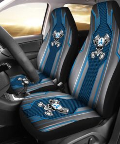Black Blue Mechanic Skull Mitsubishi Car Seat Covers 210801