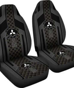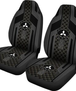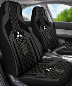 Black Themed Punisher Skull Mitsubishi Car Seat Covers 210801