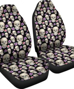 Black With Skulls And Roses Car Seat Covers 174510