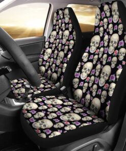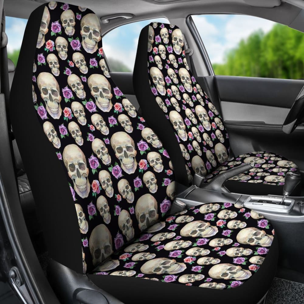 Black With Skulls And Roses Car Seat Covers 174510