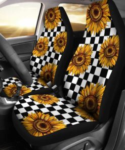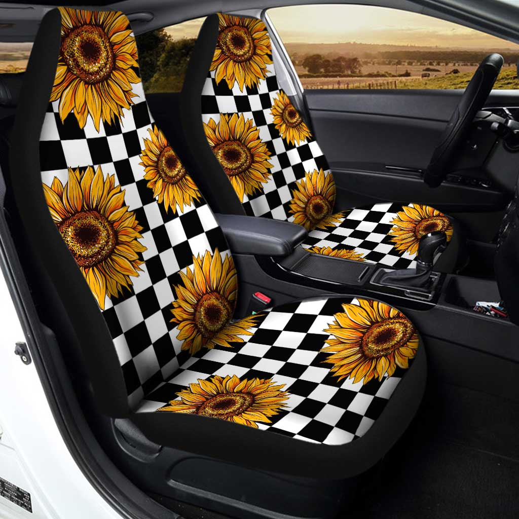 Checkerboard Sunflower Car Seat Covers Custom Car Accessories Gifts Idea