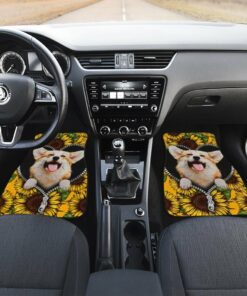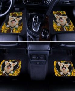 Cute Sunflower Corgi Car Floor Mats Custom Car Accessories Car Accessories For Corgi Onwers