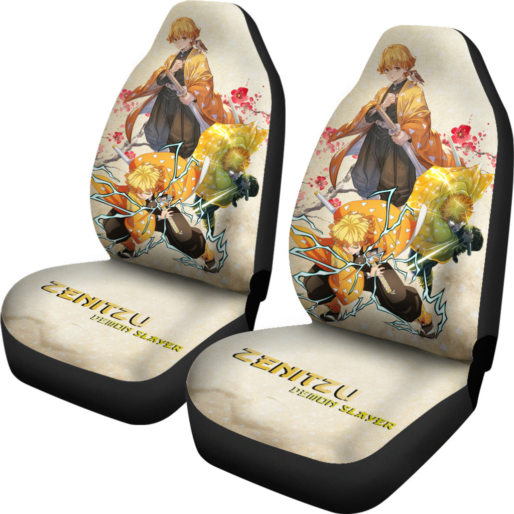 Demon Slayer Anime Zenitsu Lightning Breath Power Fighting Moments Car Seat Covers