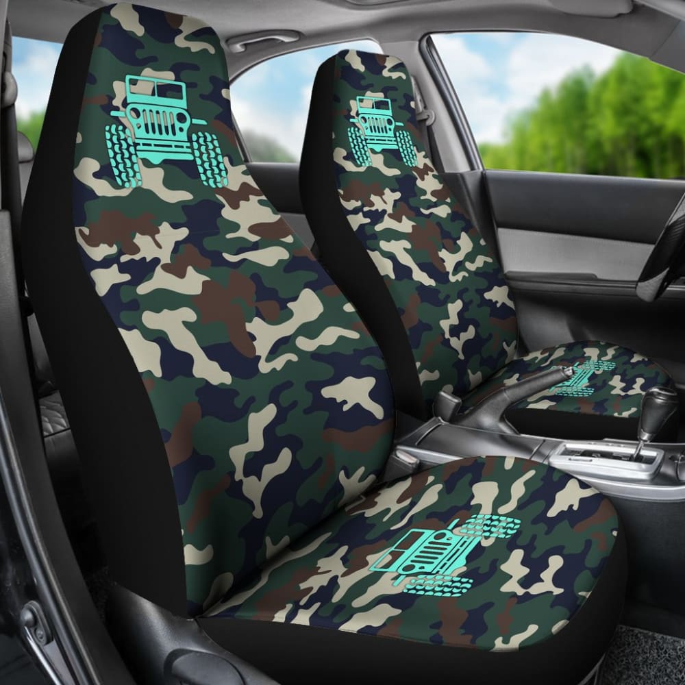 Green Camouflage Color Dark Blue Jeep Car Seats Covers 211204
