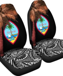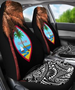 Guam Car Seat Covers Guahan Palm Tree Polynesian Pattern Black 174510