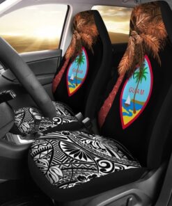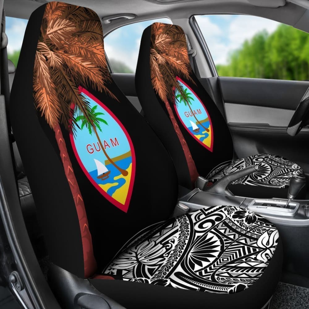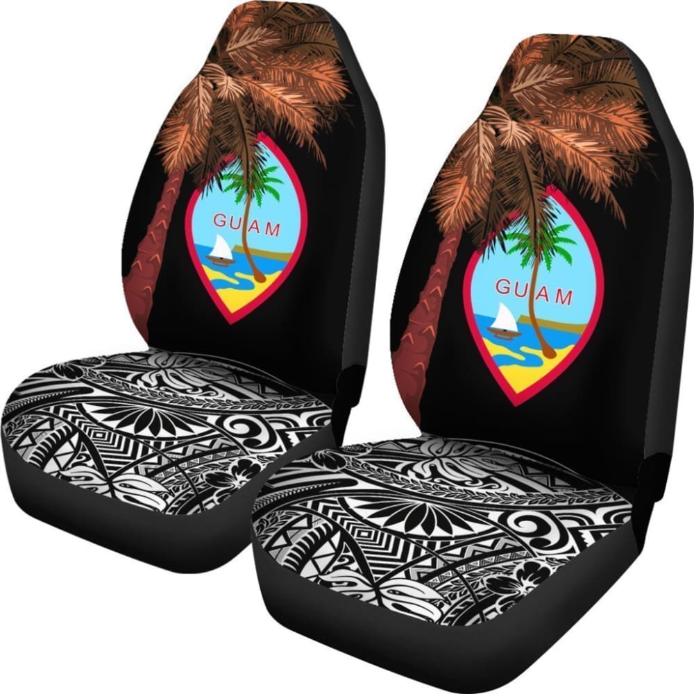 Guam Car Seat Covers Guahan Palm Tree Polynesian Pattern Black 174510