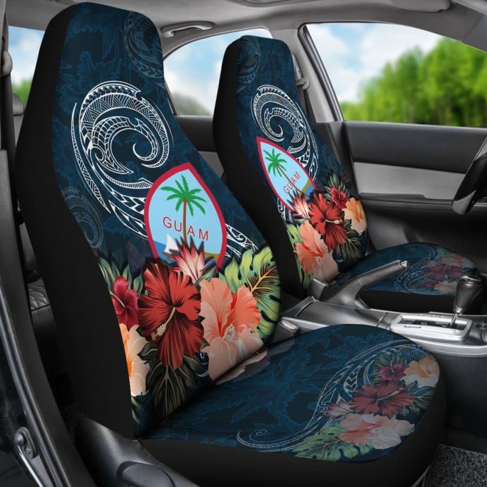 Guam Polynesian Car Seat Covers Guam Hibiscus Polynesian Wave Coat Of Arms 550317