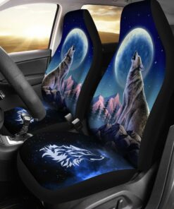 Howling Wolf Car Seat Covers Custom Car Interior Accessories Gifts Idea