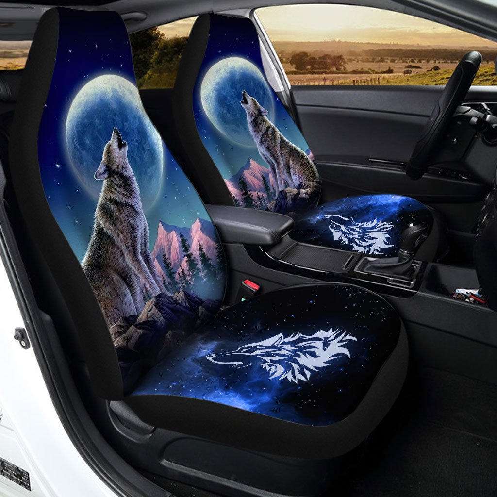 Howling Wolf Car Seat Covers Custom Car Interior Accessories Gifts Idea