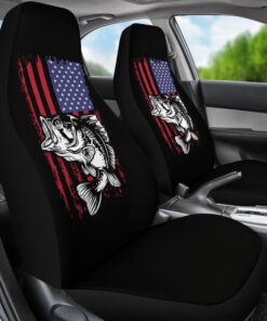 Largemouth Bass Fishing American Flag Star Stripes Car Seat Covers 211604