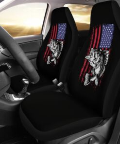 Largemouth Bass Fishing American Flag Star Stripes Car Seat Covers 211604