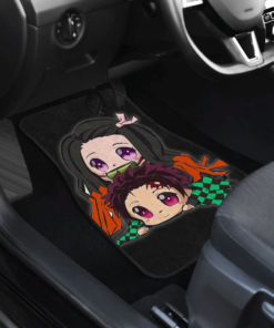 Tanjiro And Nezuko Chibi Demon Slayer Black Car Floor Mats UBC033004