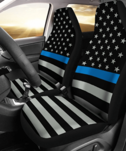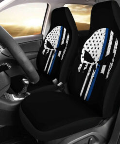 Thin Blue Line Punisher Skull Police Car Seat Covers T041520