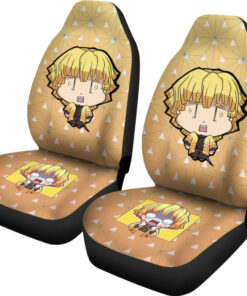Demon Slayer Anime Car Seat Covers – Cute Chibi Agatsuma Zenitsu Crying Yellow Cloak Patterns Seat Covers