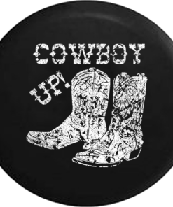 Distressed – Cowboy Up Western Boots Riding Heritage Jeep Camper Spare Tire Cover S239 Custom Size