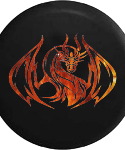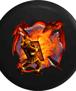 Fire Fighter Fighting Breathing Dragon Axe and Shield RV Camper Spare Tire Cover -V106
