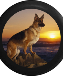German Sheppard Dog perched on Rocks Sunset Jeep Camper Spare Tire Cover BLACK- – R141